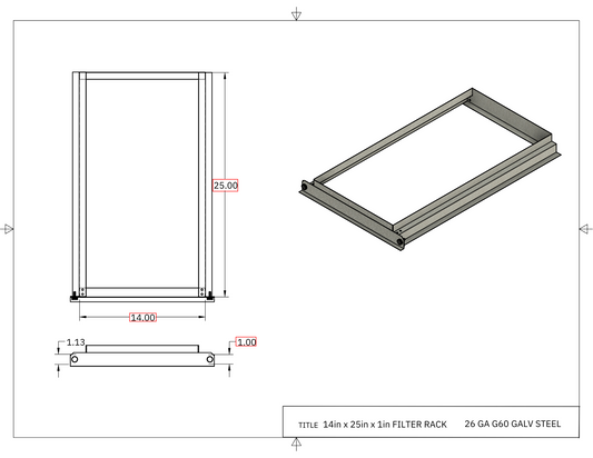 14"X25"X1" Universal Filter Rack Assembly